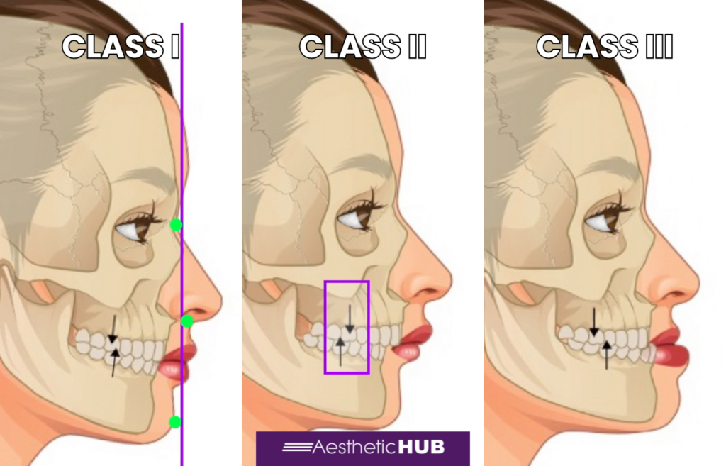 - Class I: Considered ideal, with the maxilla and mandible in proper alignment. The true vertical line runs through the nasion, subnasale, and pogonion points.