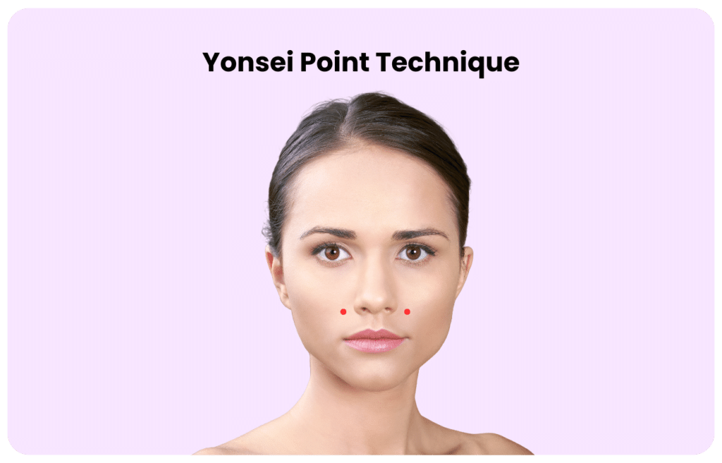 The Yonsei Point technique, named after Yonsei University in South Korea where it was developed, is a precise 2-point method that targets the convergence of the primary muscles responsible for gummy smiles.